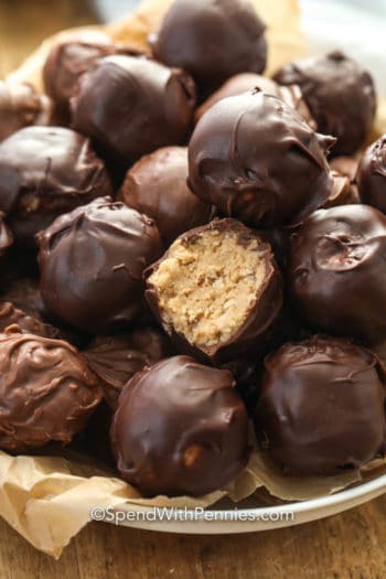 Peanut Butter Balls Kamis, 21 November 2019 Tambah Komentar Edit Peanut Butter Balls 2 cups peanut butter creamy or chunky 1/2 cup butter 2 cups powdered sugar 2 cups Rice Krispie cereal 1/3 cup graham crumbs 2 cups semisweet chocolate chips 1 tablespoon coconut oil Tried this Recipe? Bagikan Artikel ini